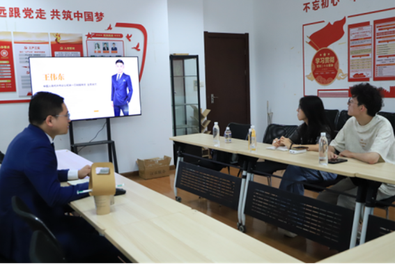 7月4日,实践团走进中国人寿杭州分公司。王伟东校友结合自身发展经历,通过PPT讲解的方式与同学们分享了关于职业选择的思考、保险行业的特质以及大学经历对职业发展的深远影响。他强调在职业发展中要“坚持长期主义”,鼓励同学们抓住机遇、脚踏实地。在交流环节,针对“您选择进入保险行业的原因是什么”这一提问,他结合自己于2020年4月加入商会的经历,围绕“兴趣、目标、行业特点与薪资待遇”四个关键词,向同学们提出了真挚且中肯的建议。