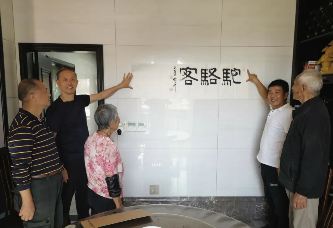 邹六根在师院求学时,我便曾与他一同骑车回他太湖边的家,拜访过他的父母。多年来,他凭借自身努力,创立了名为“行动德育”的课程体系,现在是浙江外国语学院德育研究所首席专家,其草根德育在全国具有较大影响力,引起了时任副总理张高丽、刘延东的关注。近十余年来,他每年在全国各地讲课超过两百场,每次来桐乡为教师们授课,总会邀请我到场或特意来看望我。后来,他在老家罗溇建了一幢乡间别墅,多次邀我前去。2020年7月31日,我与妻子前往做客,再次拜见了他的双亲。他还特意将主卧收拾出来让我们下榻。当时,我见他餐厅的墙面还空着,便特地请我的乌镇同乡、书法家章柏年老师题写了一幅作品赠予他,为他补壁。