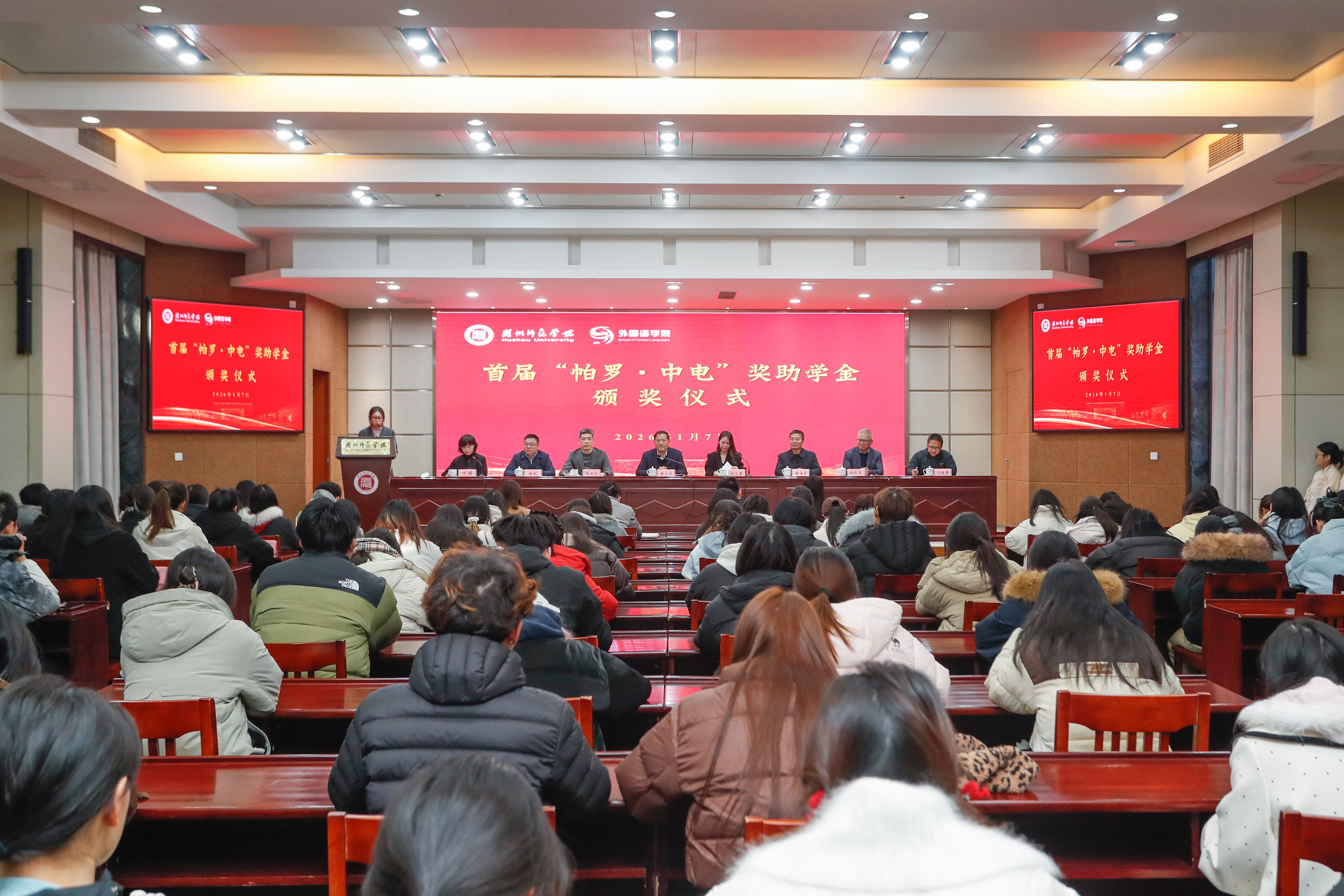 据悉,“帕罗·中电”奖助学金于2025年4月在学校109周年校庆之际签约设立,每年20万,连续资助五年,旨在支持外国语学院学子在访学交流、升学深造、学科竞赛与励志成才等方面追求卓越。此次颁奖仪式的成功举办,不仅表彰了先进、树立了榜样,也进一步凝聚了校企协同育人的合力,为学生的成长与发展注入了温暖而坚实的力量。